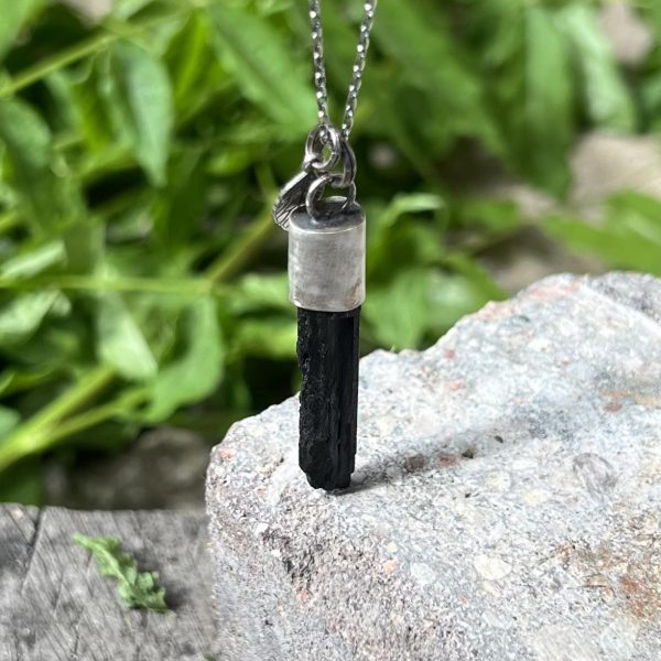 Oprawa ze srebra jest zdecydowanie bardziej trwała od kamyków na druciku albo na nitce. Dlatego tez amulet ten będzie służył wiernie i długo. Tuż przy zapięciu dodałam mniejszy czarny turmalin, by muskał Twój kark. Kamień ma długość 36mm.