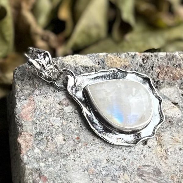Kamień księżycowy kropla to wisiorek subtelny i delikatny, który stworzyłam ostatnio. Ten unikatowy kamyk trafił w moje ręce i od razu mnie zachwycił. Fajny kształt, lekko przejrzysty i lekko matowy, z delikatną poświatą. Księżycowy kamień ma wymiary 18 x 13 mm, od spodu kamień zakryłam srebrem.