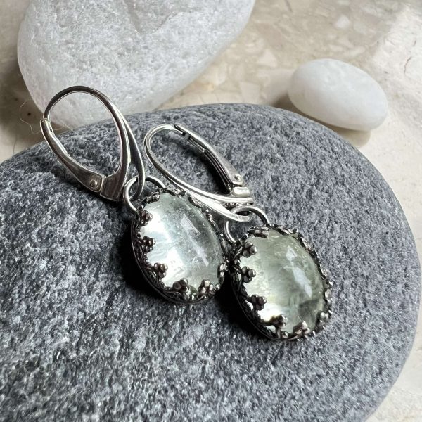 Kolczyki akwamaryn w koronce to kolczyki które stworzyłam na specjalne zamówienie. Dwa owale o delikatnej barwie niebieskiej o wymiarze 11 x 8 mm ubrałam w koronkę. Całość srebra lekko oksydowałam i mocno polerowałam. Natomiast srebro w środku pozostawiłam jasne, aby nie zaburzać niczym delikatnego koloru akwamarynu szlachetnego. Kolczyki powiesiłam na zamówienie na biglach zamkniętych angielskich.