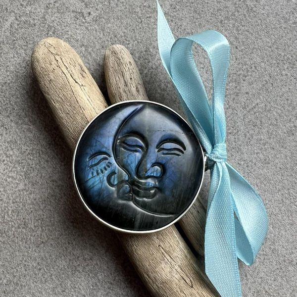 Ulegnij kosmicznemu przyciąganiu – posiądź Niebieski labradoryt słońce księżyc.
