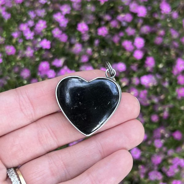 Kamień turmalinu w sobie kropki kryształu górskiego – inkluzje. Całość oprawiłam w srebro próby 925, które oksydowałam i podrapałam pozostawiając jedynie szarość srebra. Od spodu kamień zakryłam srebrem. Wisiorek zwieńczyłam prostym kółeczkiem. Koło ma duży 6 mm otwór, można więc nosić wisiorek z turmalinem na łańcuszku lub rzemyku. Z pewnością to ciekawa alternatywa dla klasycznych owali. Motyw serca w tym wisiorku z turmalinem zachęca by kochać siebie i bliskich. Wisior ten idealnie nadaje się do wizualizacji i afirmacji miłości. Polerowany naturalny czarny turmalin to doskonały amulet ochronnym, niedopuszczającym negatywizmu do osoby która go nałoży. Kamień polerowany, jednak ma spękania i ryski typowe dla tego kamienia naturalnego.
